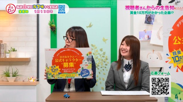 2026年1月13日、CCNの地域情報番組『ぎふわっか』に出演し、創業100周年記念企画として実施している「日の丸タクシー公式キャラクター募集」についてご紹介いただきました。