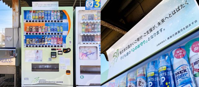 当社はこのたび、施設内に「東海交通遺児を励ます会応援自販機」を新たに設置いたしました。